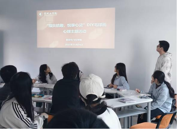 为引导学生掌握科学的压力调适方法,营造积极向上的校园心理氛围,11月14日,航空与飞行学院组织开展了以“指尖拾趣,悦享心灵”为主题的心理疗愈毛球画手工体验活动。本次活动由学院负责心理健康教育老师赵敏主持,旨在通过创意手工的形式,为学生们开启一段沉浸式的解压之旅。