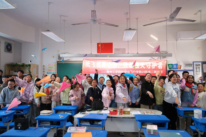 为庆祝中国人民解放军空军成立76周年,弘扬爱国主义精神,激发青少年对国防事业的关注与热爱,11月12日,航空与飞行学院团委学生会与24机务二团支部携手,走进常州市新北区薛家实验小学,共同举办了一场别开生面的“纸飞机寄心愿,致敬蓝天守护者”主题教育活动。