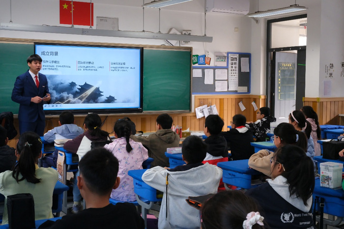 首先,宣讲员为小学生们讲述了人民空军在战火中诞生、在奋斗中成长的壮丽背景。从“马拉飞机”的艰苦岁月到如今战鹰翱翔的辉煌成就,一段段感人的历史故事,让孩子们深刻体会到人民空军白手起家、不畏艰难的峥嵘岁月,理解了“蓝天守护者”这一称号背后沉甸甸的责任与荣光。