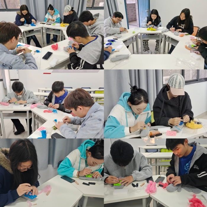 学院为大家准备了羊毛材料、编织工具与教学视频。在志愿者的指导下,同学们从穿针引线开始,逐步学习锁边、填充、缝合等手工技能。飞行技术专业2024级学生小陈表示:“这是我第一次亲手做手套,虽然一开始不太熟练,但在老师和同学的帮助下,慢慢掌握了技巧,感觉特别有成就感。”活动中,同学们互相交流、分享心得,不仅完成了独一无二的保暖手套,更在协作中增强了动手能力与团队协作意识,生动体现了学院“既给予物质支持,更注重能力发展”的资助育人导向,活动氛围融洽且温馨。