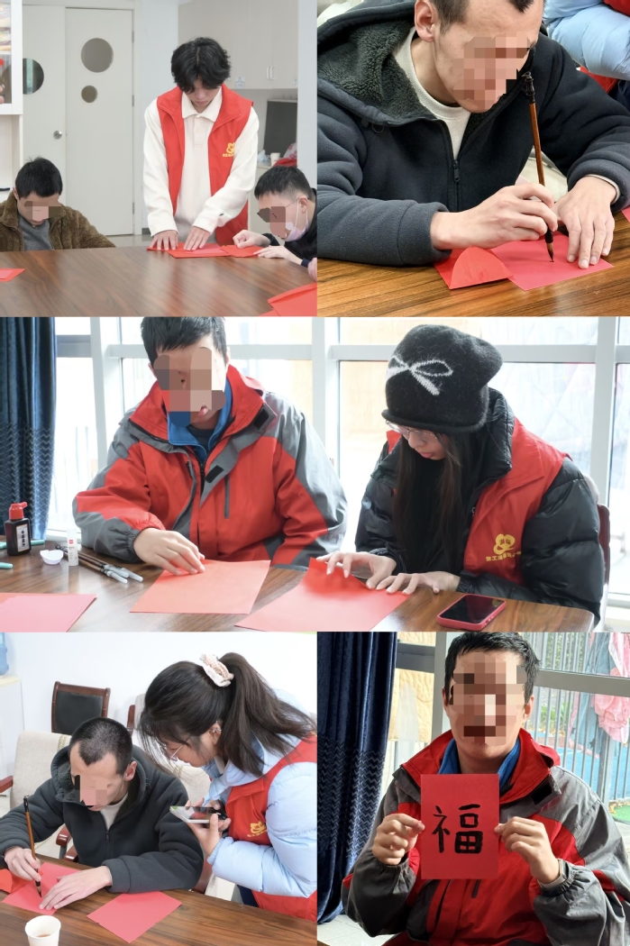 巧手做红包,心意叠祝福。孩子们在志愿者陪伴下折叠写有“福”字的红纸、粘贴装饰,完成一个个独一无二的新年红包,专注与合作的氛围让成就感洋溢课堂。志愿者们细心协助、启发创意,引导孩子们在安全愉悦的环境中体验传统手作的魅力,也在过程中提升了自身的组织引导与共情能力。