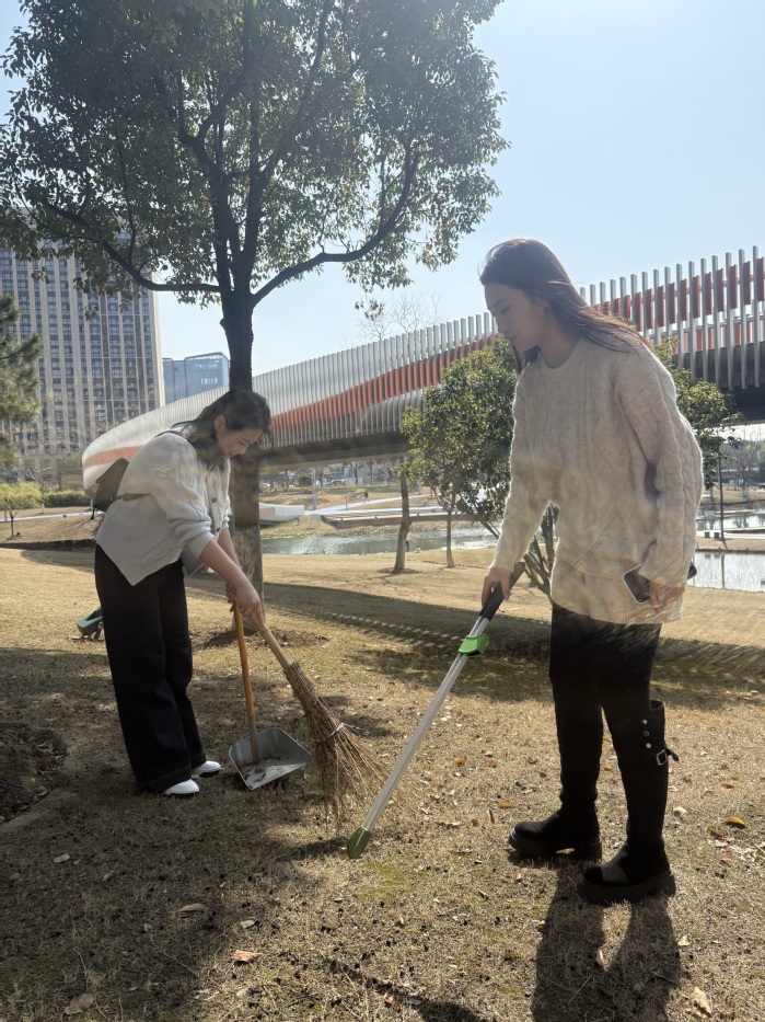 活动现场,同学们分工协作、默契配合,手持清洁工具对周边公园、公共绿地开展地毯式清理,细致捡拾塑料袋、纸屑、落叶等垃圾,精心养护校园绿植、擦拭公共设施,彻底清除卫生死角。大家秉持不怕脏、不怕累的奉献精神,全程热情高涨、干劲十足,一边高效完成环境整治,一边向身边同学宣传绿色环保理念,带动更多人守护美好家园。